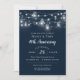 Cartons d'invitation personnalisés pour une fête de 40e anniversaire de mariage à prix abordable avec un modèle facile à utiliser pour la personnalisation. Ce design rustique chic présente des guirlandes de lumières scintillantes et des pots Mason sur un fond bleu marine foncé. Personnalisez l'invitation avec les détails de votre fête d'anniversaire ou modifiez le texte pour l'utiliser pour n'importe quel événement. Utilisez les outils de conception pour choisir n'importe quelle couleur de fond, ajouter des photos et personnaliser les polices et les couleurs du texte pour créer un design unique pour votre fête d'anniversaire.