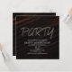 Invitation à une fête d'anniversaire avec des rayures noires et orange. Personnalisez pour n'importe quel événement.