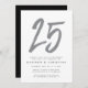 Célébrez 25 ans de mariage (ou autre chose !) avec cette invitation noire et fausses paillettes argentées présentant un grand 25 stylisé. Convient également pour une fête d'anniversaire de 25 ans ou une réunion de classe de 25 ans.