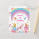 Ceci est une invitation à une fête d'anniversaire sur le thème de la licorne et de l'arc-en-ciel pour les enfants. Le design comprend une décoration d'arc-en-ciel et de paillettes avec des étoiles, des arcs-en-ciel et des fleurs.