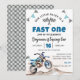 Lancez la célébration avec cette invitation pour une fête d'anniversaire Fast One Blue Dirt Bike, parfaite pour le premier anniversaire de votre petit cavalier. Avec des graphismes audacieux de moto cross et une palette de couleurs bleues, ce design capture l'excitation d'un thème inspiré du motocross. Idéal pour une fête d'anniversaire Fast One, il comprend un espace pour personnaliser tous les détails de votre événement pour un look amusant et coordonné. Facile à personnaliser et à imprimer, cette invitation donne le ton pour une célébration pleine d'action que vos invités ne voudront pas manquer.