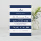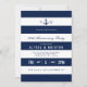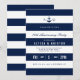 Une invitation à une fête d'anniversaire sur le thème nautique moderne et audacieux avec un espace pour les monogrammes des mariés et les informations pertinentes concernant votre événement à l'intérieur de bandes horizontales.