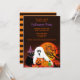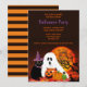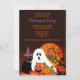 Cette invitation à une fête de costumes d'Halloween présente un collage d'un chat noir dans un cimetière effrayant et un fantôme. Chaque illustration utilisée dans ce design a été découpée d'une photographie puis a été placée manuellement en superposition. Mettez à jour cette invitation avec vos informations de fête d'Halloween.