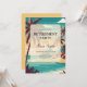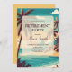 Invitation à une fête de retraite avec une plage tropicale ensoleillée dans des couleurs rétro.