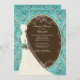 Commencez votre douche nuptiale directement avec notre gracieuse et élégante invitation à la douche nuptiale. Le design se compose d'une mariée chic posée sur un arrière - plan bleu turquoise avec un cadre marron entouré de beaux et chics fleuris. Visitez notre site www.celebrateitinvites.com pour ce design dans une grande variété de modèles de couleurs.
