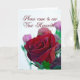 Une rose rouge foncé orne cette invitation.