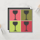 Une façon totalement moderne de s'amuser - cette invitation à la dégustation de vins incorpore un style pop art pour présenter quatre verres noirs contre de riches blocs de couleur en vert corail, rouge, olive et citron vert. Très cool, très contemporain.