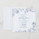 Invitez officiellement vos invités à votre soirée de mariage "quelque chose de bleu" avec notre carte d'invitation de luxe qui présente des rayures classiques et des fleurs navales.