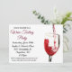 Une invitation élégante que vous pouvez personnaliser et envoyer pour votre soirée dégustation de vin. La police et les couleurs du texte sont entièrement personnalisables selon vos préférences. Un motif en cercle rouge et noir orne le dos de la carte.