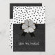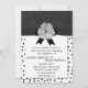 Élégante et fantaisiste, cette invitation à la fête de fiançailles en noir et blanc, se fait en noir sur damas noir et en noir sur motif de pois blanc. Les graphiques d'un ruban noir au milieu séparent les deux motifs, avec un joli arc noir et une fleur blanche, au milieu du ruban. Tous les côtés du texte de la carte sont entièrement personnalisables pour votre événement spécial. Idéal pour les anniversaires, les anniversaires, les activités caritatives ou tout autre événement.