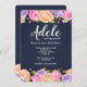 Une invitation florale époustouflante avec un fond bleu marine et une abondance de fleurs roses, lavande et jaunes bordant les bords supérieur et inférieur de la carte. (Conception de Freepik). <br/><br/>La carte est facile à personnaliser avec votre libellé, police, couleur de police et choix parmi six types de papier.<br/><br/>Pas exactement ce que vous cherchez ? Tous nos produits peuvent être conçus sur mesure pour répondre à vos besoins sans frais supplémentaires.<br/><br/>Contactez-nous simplement à askcottonlamb@gmail.com<br/><br/>Produits coordonnés disponibles :
