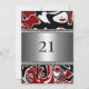 Invitation Abstrait Black White Red Silver Trim 21e anniversa