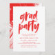 Des invitations à la remise des diplômes élégantes et modernes, avec une police de brosse peinte à la main et des touches abstraites rouges. Personnalisez les invitations chics de la fête de remise de diplômes avec vos détails de graduation personnalisés pour un look qui impressionnera les invités!