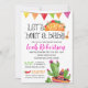 Accès de notre taco 'un bébé - l'invitation de baby shower comporte un mélange coloré de lumineux, d'audacieux, couleurs, et les graphiques mexicains de fiesta d'amusement tels qu'un taco, un sombrero, un cactus et un plus ! Perfectionnez pour n'importe quel taco ou baby shower mexicain de thème de fiesta ! En outre disponible dans notre magasin avec un arrière - plan de tableau.