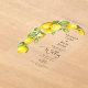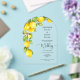 Faites une déclaration audacieuse et rafraîchissante avec cette Invitation Transparent Acrylique Citrus Mariage jaune Citron, parfaite pour les couples qui planifient une fête lumineuse et joyeuse. Fabriquée à partir d'acrylique de qualité supérieure et cristalline, cette invitation met en valeur des accents vibrants de citron jaune et de feuilles d'agrumes verts qui évoquent des sentiments de chaleur, de joie et de beauté naturelle. La typographie moderne est gravée ou imprimée directement sur l’acrylique, assurant une finition élégante et sophistiquée, à la fois durable et attrayante. Idéale pour les mariages d'été, les fêtes de jardin en plein air ou les événements à thème méditerranéen, cette invitation allie élégance et touche ludique. Vos invités adoreront recevoir ce gardien unique qui reflète parfaitement votre journée ensoleillée et remplie d'amour.