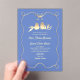 Élégante et contemporaine, cette faire-part de mariage en acrylique transparent et dépoli bleu présente un charmant arc de cheville dessiné à la main et une paire dorée d'amoureux. Idéal pour une fête de l'amour amusante et branchée !