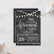 Invitation adorable de surprise pour la retraite avec un aspect de tableau noir faux et de superbes graphiques de guirlandes lumineuses !