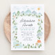Des amis et des familles Invitations pour fêter une petite fête en chemin avec cette invitation thématique "Adventure Awaits", avec des montagnes aquarelles, des pins et des paysages.
