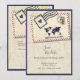 International Adventure Rustic Destination Wedding collection Ce design capture l'esprit de la déambulation et de l'amour, mêlant esthétique de voyage vintage et charme rustique. Avec ses rayures aériennes classiques en rouge et bleu, ses tons beiges muets et ses subtiles textures cartographiques, il évoque l'impression de partir en voyage romantique. Des éléments comme les timbres-poste, les détails de la carte du monde et le style rétro en font un lieu idéal pour les couples qui rêvent d'une célébration mondiale remplie d'aventure, de connexion et d'élégance intemporelle. Cette conception fait partie d'une collection de mariages personnalisables correspondante. Je peux gagner une petite commission grâce à des achats effectués via des liens de référence sur les médias sociaux.