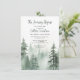 A quiet misty ethereal forest sets the scene for this modern watercolor baby shower invitation. Soft evergreen trees fade into a pale white sky, framing elegant mixed typography with the phrase The Journey Begins at the top and the parent to be’s name highlighted in flowing script. Sage green tones and airy white space keep the design calm, nature inspired, and completely gender neutral for any baby. Personalize the text with your shower details, RSVP information, and registry wording to create a unique invitation that feels like the start of a new adventure. A lovely choice for parents who love the outdoors and are searching for forest baby shower invitations with a modern, minimalist feel. Available in print, as a digital download, or both!