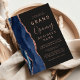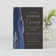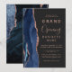 clients Invitations à la grande ouverture de votre entreprise avec cette élégante invitation moderne, avec une bordure en aquarelle bleu marine ornée d'une parties scintillant en or faux rose. Le texte personnalisable combine écriture rose rose, cuivre et polices italiques sur un arrière - plan non noir. L'envers est assorti d'une agate bleu marine et d'or rose.