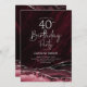 Bourgogne et argent agate 40e anniversaire invitation de fête. Elégant design moderne avec marsala rouge foncé aquarelle vin agate marbre arrière - plan, faux parties scintillant argent et typographie script police. Carte invitation branchée parfaite pour une célébration anniversaire féminine élégante. Invitations Zazzle imprimées ou téléchargement instantané modèle imprimable numérique.