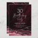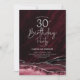 Bourgogne et argent agate 30e anniversaire invitation de fête. Elégant design moderne avec marsala rouge foncé aquarelle vin agate marbre arrière - plan, faux parties scintillant argent et typographie script police. Carte invitation branchée parfaite pour une célébration anniversaire féminine élégante. Invitations Zazzle imprimées ou téléchargement instantané modèle imprimable numérique.