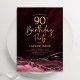 Bourgogne et or agate 90e anniversaire invitation fête. Elégant design moderne avec marsala rouge foncé aquarelle vin agate marbre arrière - plan, fausse parties scintillant or et typographie script police. Carte invitation branchée parfaite pour une célébration anniversaire féminine élégante. Invitations Zazzle imprimées ou téléchargement instantané modèle imprimable numérique.