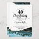 Invitation de fête de 40e anniversaire aux couleurs turquoise, blanche et or. Design élégant et moderne avec aquarelle agate marbre arrière - plan, fausse parties scintillant or et typographie script de police. Carte invitation branchée parfaite pour une célébration anniversaire féminine élégante. Invitations Zazzle imprimées ou téléchargement instantané modèle imprimable numérique.