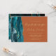 Le bord gauche de cette élégante faire-part de mariage moderne est doté d'une bordure turquoise en aquarelle bleue ornée d'une parties scintillant en faux or. Le texte personnalisable combine écriture manuscrite couleur or, cuivre et polices italiques sur un arrière - plan orange brûlé. L'envers présente un design d'agate turquoise et or assorti.