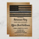 Cartes d'invitation pour la fête de retraite d'un agent de correction de la Fine Ligne Grise ou invitations pour la remise de diplômes d'un agent de correction. Célébrez des années de service dévoué, ou célébrez votre nouveau diplômé de l'académie des agents de correction, et invitez amis et famille à votre fête de célébration avec ces invitations de remise de diplômes de l'Académie de correction avec drapeau Fine Ligne Argentée - un design avec le drapeau américain dans les couleurs du drapeau des agents de correction, design en détresse. Cette invitation de remise de diplômes d'agent de correction est également parfaite pour les invitations de retraite de libération conditionnelle et de correction, changement de lieu dans la personnalisation. Consultez notre collection pour des cadeaux de retraite d'agent de correction assortis, des cadeaux de remise de diplômes d'agent de correction, des faveurs de fête et des fournitures. DROITS D'AUTEUR © 2021