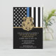 Cette conception comprend un drapeau de la police avec des rayures noires et blanches, ainsi qu'une fine bande bleue. L'insigne de police et le texte en or sont au-dessus de tous les détails du parti pour l'officier de l'application de la loi, le shérif, le capitaine ou les chefs du parti de retraite qui prend sa retraite.