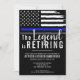 Cette invitation à la retraite comporte un drapeau de la police avec des rayures noires et blanches, ainsi qu'une mince bande bleue. Le texte "La Légende prend sa retraite" s'inscrit avant tout dans les détails du parti pour l'officier de police, le shérif, le capitaine ou le parti de retraite du chef qui prend sa retraite.