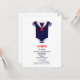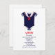 Thème de baby shower nautique illustrant un costume marin bleu marine avec rayures rouges et arc.