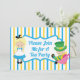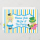 Cute Alice in Wonderland anniversaire invitation de fête de thé pour enfants. La jolie petite fille Alice dans sa robe bleue et le Hatter Mad s'assoient sur une jolie frontière bleue sur un invitation de carte géante. Customisez avec votre propre texte pour un bon anniversaire pour les enfants.