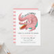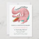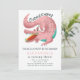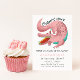 Joli thème alligator fête d'anniversaire carte de modèle d'invitation avec une illustration d'un crocodile rose avec un casquette de fête avec le texte "Chomp, chomp il y a une fête dans le marais!" Parfait pour une fête de filles en été.