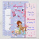 Motif festif de cœurs jolis sur fond bleu clair/lavande. Il y a des touches de jeune fille sucrées avec des nœuds roses imprimés et une garniture de dentelle. Trois petites filles sont représentées portant des pyjamas et prêtes à faire la fête. Personnalisez le texte sur le devant et le dos de cette adorable invitation de fête d'anniversaire de sommeil. Le nom, l'année d'anniversaire et toutes les informations sont prêts à être modifiés par vous.