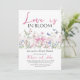 Célébrez la mariée d'être avec cet Amour est dans le thème de Bloom Fleur sauvage rose Bow Floral Shower Invitation! Ce charmant design est composé d'un arc, de papillons et de fleurs aux couleurs rose, bleu et vert, parfaits pour une soirée sur le thème du jardin. Customisez les détails sans effort pour créer l'invitation parfaite pour votre événement spécial.