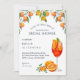 Célébrez la future mariée dans un style méditerranéen chic avec cette invitation de mariage personnalisée "Love at First Spritz" ! Ce design élégant présente une arche d'oranges vibrantes et de feuillage luxuriant mêlés à de délicates fleurs d'oranger blanches, créant une esthétique fraîche et vive. Il met également en vedette un délicieux et rafraîchissant cocktail Spritz à l'Aperol et aux agrumes, présenté dans un verre élégant et haut rempli de glace et garni d'une tranche d'orange. Sur un fond blanc croquant, ce design irradie la sophistication et le charme, parfait pour ajouter une touche de soleil et de joie à votre événement spécial.