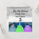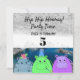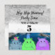 Une invitation à l'anniversaire de l'hippopotame mignonne et drôle, agrémentée de trois hippopotames colorés dans l'eau et d'un arrière - plan confetti noir et blanc. Préparez-vous à faire la fête !