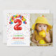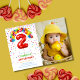Ces invitations jolies et joyeuses à la fête d'anniversaire comprennent un ballon rouge numéro 2, des ballons colorés et des confettis avec une photo de votre choix. Personnalisez les invitations de fête d'anniversaire en ajoutant le nom de votre enfant, son âge et les détails de la fête.