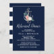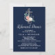 Cette carte d'invitation à la répétition d'été de la Marine à ancre fleurie est parfaite pour une répétition de mariage à thème nautique. Le design présente un beau bouquet de fleurs d'été blanches et roses rousses, enroulé autour d'une ancre de bateau aquarelle.