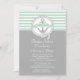 Commencez votre baby shower nautique en bord de mer d'été directement avec nos bateaux contemporains à l'invitation baby shower pour un baby shower neutre pour les femmes. Nos bateaux élégants et populaires accueillent une nouvelle invitation à la douche bébé avec une ancre grise dans un cercle de cordes avec une bannière sur une bande colorée vert clair & gris et arrière - plan gris. Parfait pour le baby shower à thème du voilier. Retournez l'invitation pour une bande verte et blanche assortie avec une ancre. Disponible dans notre boutique dans d'autres choix de couleurs