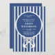 Une invitation à la fête d'anniversaire marine bleu marine pour un gars avec une ancre et marine et un arrière - plan rayé blanc. Parfait pour un anniversaire de fête en bateau !