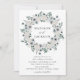 Élégantes invitations de mariage florales avec vos noms encerclés par une couronne d'anémones blancs, de roses d'ivoire et de feuilles vert sauge foncé avec vos détails mariages affichés ci-dessous. Les invitations de mariage de l'anémone blanche s'inversent pour montrer un bel arrière - plan d'aquarelle vert sauge foncé.