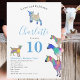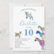Des illustrations colorées de chèvre d'aquarelle mignonne en violet, bleu, orange, jaune, rose et aqua. Un adorable animal de ferme 10e anniversaire invitation de fête avec des chèvres et des chèvres debout sur des chèvres. Cette invitation de fête d'anniversaire amusante est facile à personnaliser pour créer une invitation unique de fête pour enfants adaptée aux filles, garçons et amateurs de chèvre adulte. Chèvre psychédélique multicolore oeuvre originale de l'artiste Catherine Sweetman