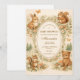 Cette charmante conception de fête prénatale en milieu forestier présente des animaux de forêt adorables rassemblés autour d'un délicat cadre vintage, créant une scène chaleureuse de livre d'histoires parfaite pour célébrer l'arrivée prochaine d'un petit. De douces illustrations d'un lapin, d'un raton laveur, d'un écureuil et d'un hibou sont entourées de minuscules champignons, de pommes de pin, de fleurs sauvages et de verdure forestière douce. La palette neutre chaude et le style aquarelle doux donnent au design une atmosphère de nurserie cosy et nostalgique inspirée des illustrations classiques de livres pour enfants. Parfait pour les fêtes prénatales sur le thème de la nature, les célébrations en forêt ou les rassemblements rustiques en forêt.