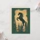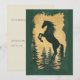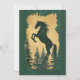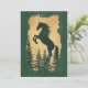 Élégante invitation Année du Cheval 2026 présentant une majestueuse silhouette de cheval cabré en or scintillant sur des pins de couleur vert forêt profond.
