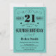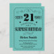 Invitation d'anniversaire 21 ans surprise noir et sarcelle. Fond sarcelle aqua turquoise et noir. Anniversaire adulte. Anniversaire homme ou femme. Invitation d'anniversaire pour garçon ou fille, ado ou adulte. 13e, 15e, 16e, 18e, 20e, 21e, 30e, 40e, 50e, 60e, 70e, 80e, 90e, 100e. Tout âge. Pour une personnalisation plus poussée, veuillez cliquer sur le bouton "Personnaliser" et utiliser notre outil de conception pour modifier ce modèle.