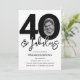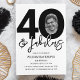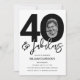 Invitation anniversaire 40 ans élégante et modifiable avec 40 & fabulous, un grand 40 avec une photo à l'intérieur du zéro, avec une police noire sur fond blanc classique et un modèle de célébration d'anniversaire facile à personnaliser.
